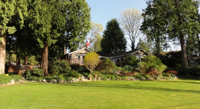 An amazingly unique 33,715 south facing corner lot with ocean, city and mountain views. Located on one of South Surrey‘s most sought after streets - Crescent Dr. this house is just steps to Sandy Trail, leading down to Crescent Beach. Walk to the water in minutes. This expansive property features towering trees, large park like setting and a gentle slope to the street that provides privacy to the solid well maintained and renovated home with wrap around patios and decks. The bright 2 level home has an open kitchen, living and 2 dining areas, large master bdrm on the main floor with vaulted ceilings, skylights, ensuite, and walk in closet. Second bedroom also has ensuite with shower and double closets. Downstairs there is a family room (used currently as fitness room) with fireplace, laundry room and plenty of storage space. The home is situated near the back of the property to maximize sunsets and views. Must see for those seeking the best lot in the best neighbourhood.