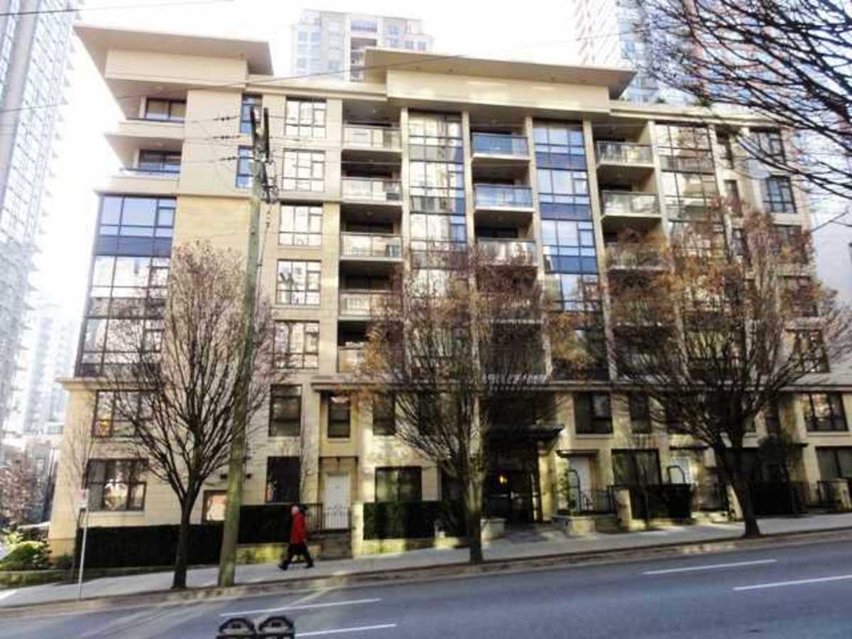 1134 sqft 2 level Townhome with street access in a boutique style apartment building with an awesome common roof top patio. The main floor has a great open room concept with higher ceilings. The kitchen features granite counters, stainless steel appliances and a good sized island. There are glass sliding doors that add extra light into the living area. The main floor also has a powder room, closet, storage under the stairs and a separate work space. The main bathroom upstairs is nice in size with lots of counter space, which is located beside the laundry and 2 bdrms which have ample closet space, and windows looking out to Smithe Street. 1 secured parking spot. Walk everywhere from this central Yaletown location!