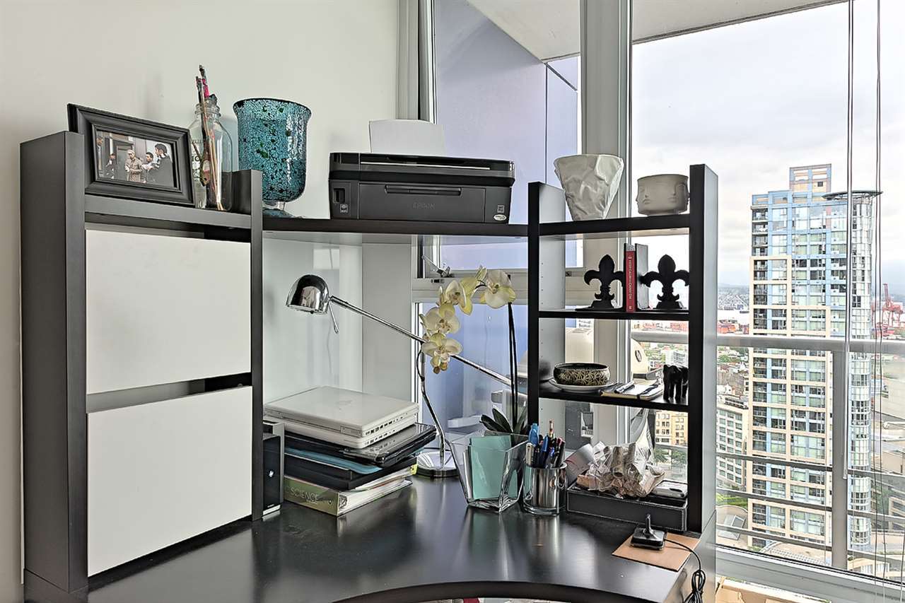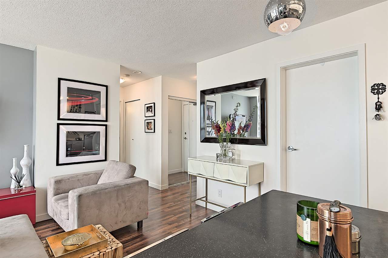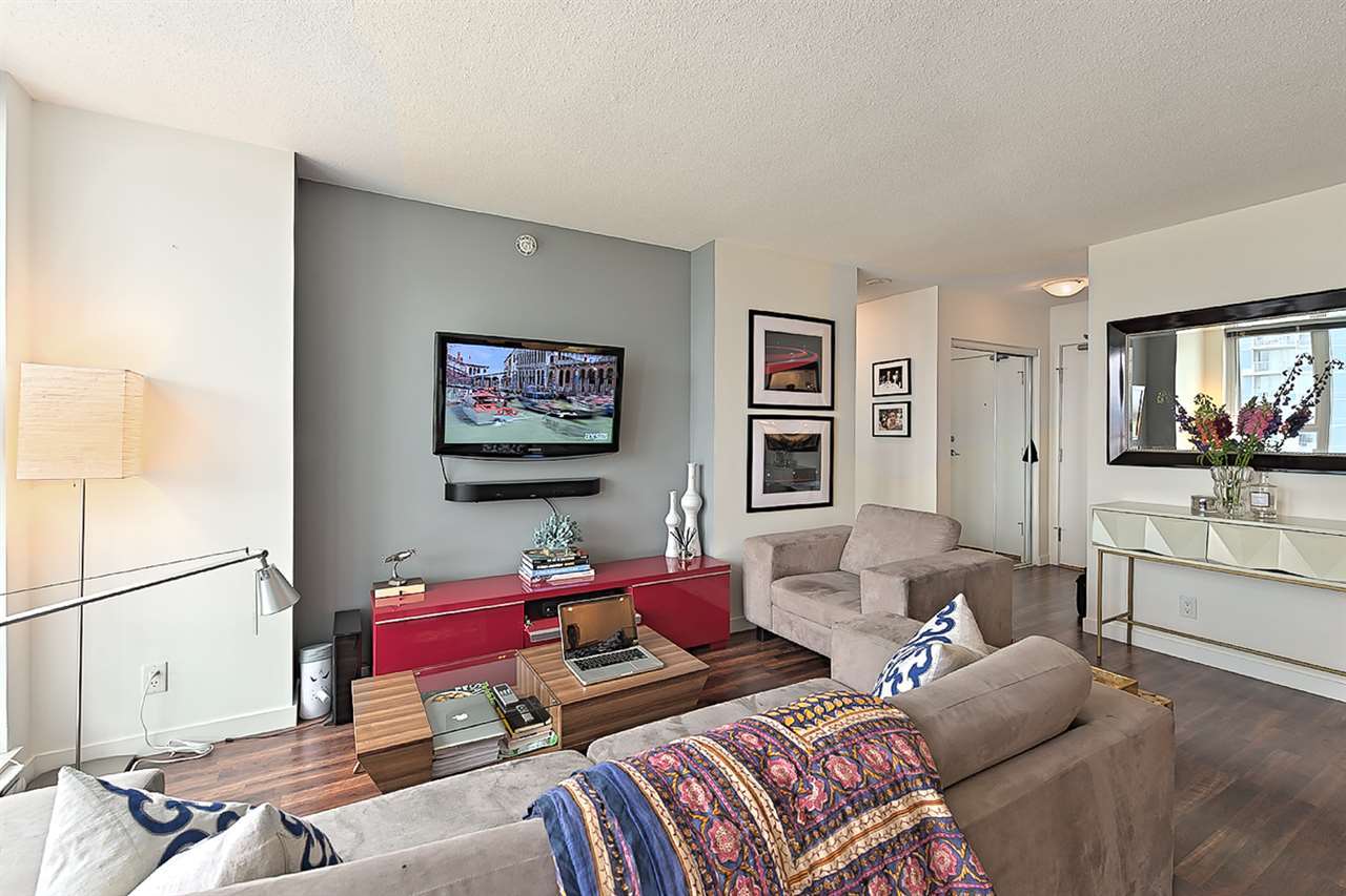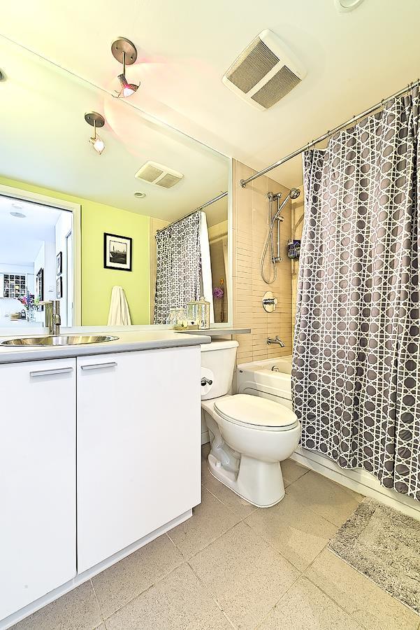 Stunning views of the North Shore mountains that will never be blocked are enjoyed from the floor to ceiling windows in this impeccably well maintained 1 bdrm & den apartment. Dark laminate floors in the living & dining room compliment the white kitchen cabinets. Outdoor balcony allows for a bbq. Large insuite storage, secured parking. Fantastic amenities include indoor pool, gym, media room and concierge. Located on a quiet street across from the future new Art Gallery. Centrally located Downtown in the Entertainment District. Vacant as of March 15th 2016.