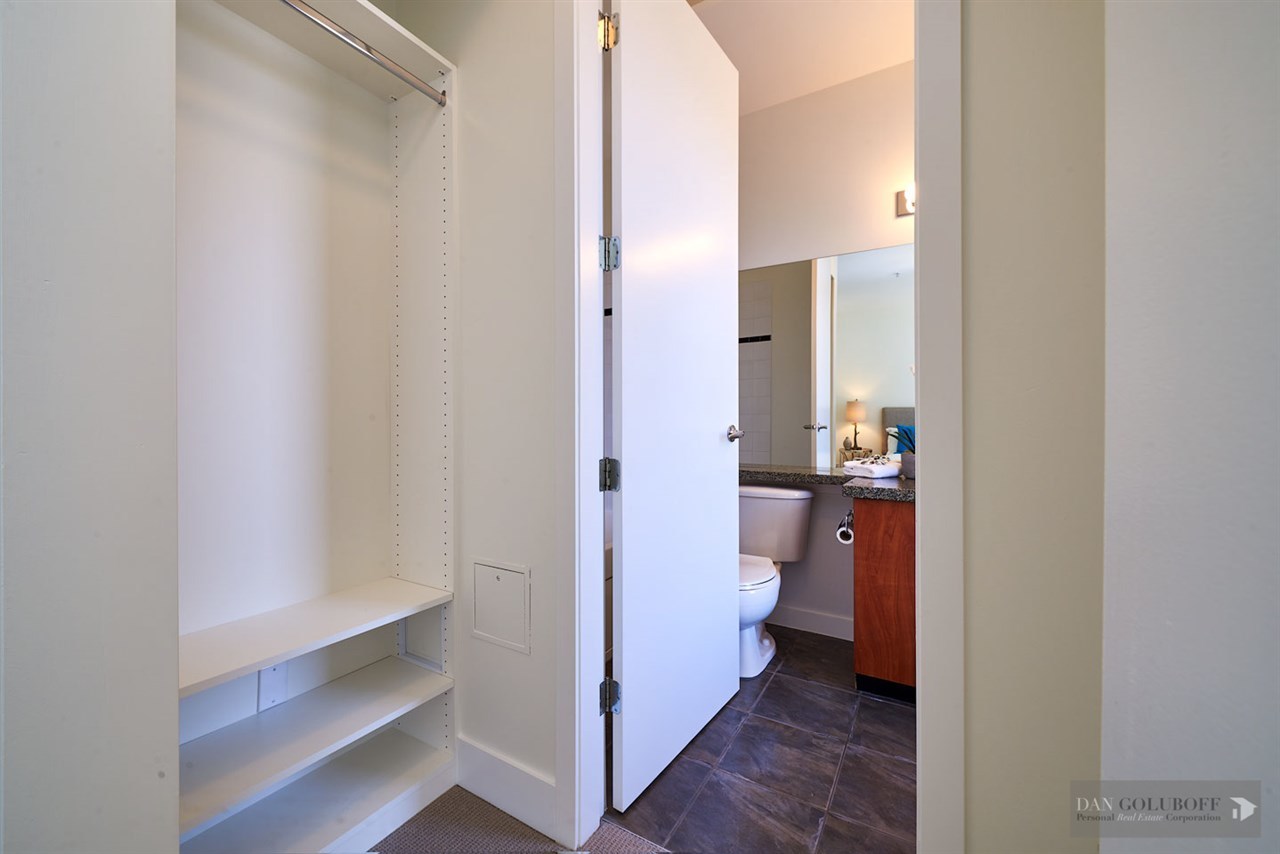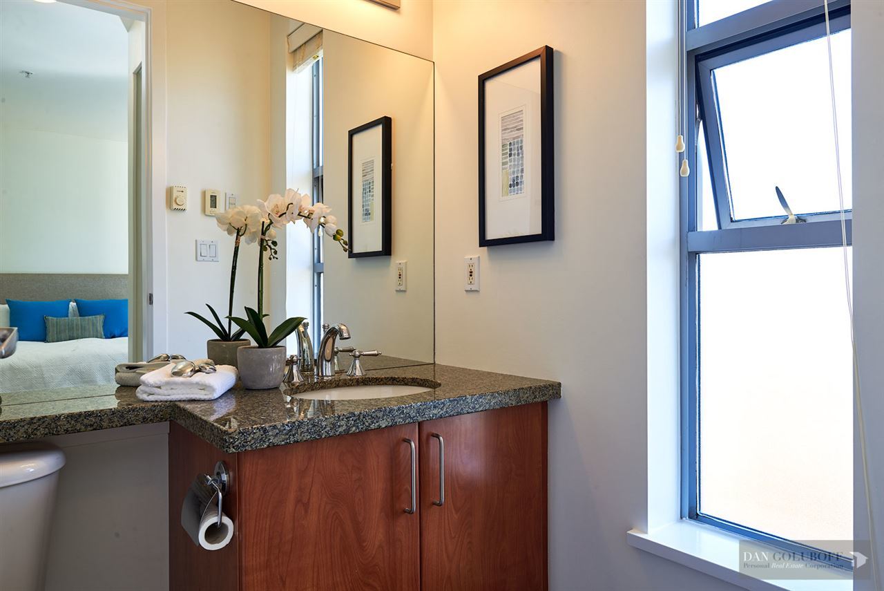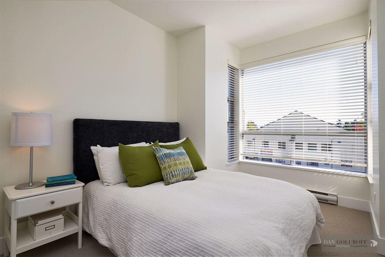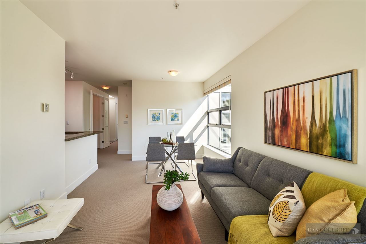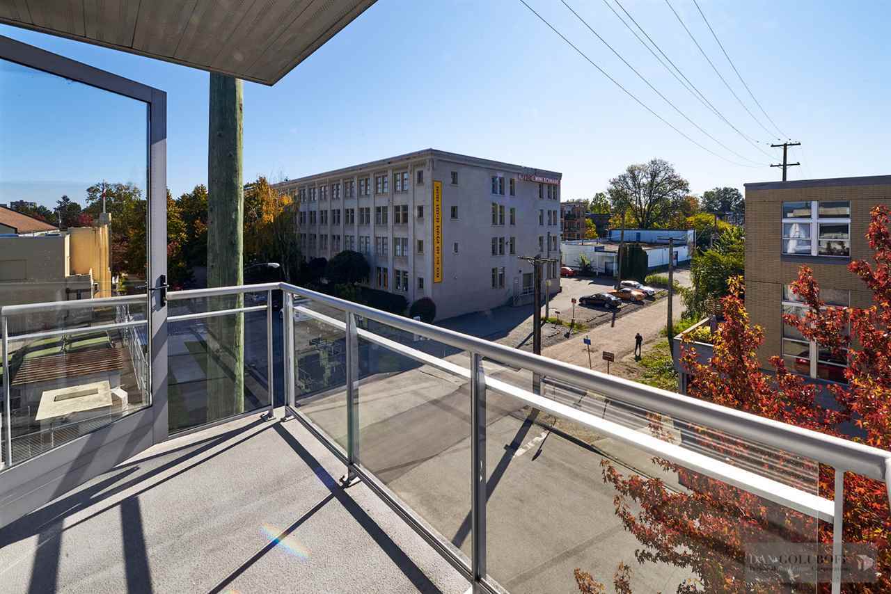 Stunning top floor 2 bdrm, 2 bath and den corner unit with South facing outdoor patio and two skylights. This bright concrete built apartment features granite counters, gas fireplace, new wool carpet and freshly painted. Open concept with over height ceilings, heated bathroom floor in master bedroom and built in closet cabinets. Located on the quiet side of the building. 1 parking, in suite laundry and in suite storage and common bike room. Centrally located in one of Kitsilano's most sought after neighbourhoods, walking distance to shops, restaurants, parks and Kits Beach.
