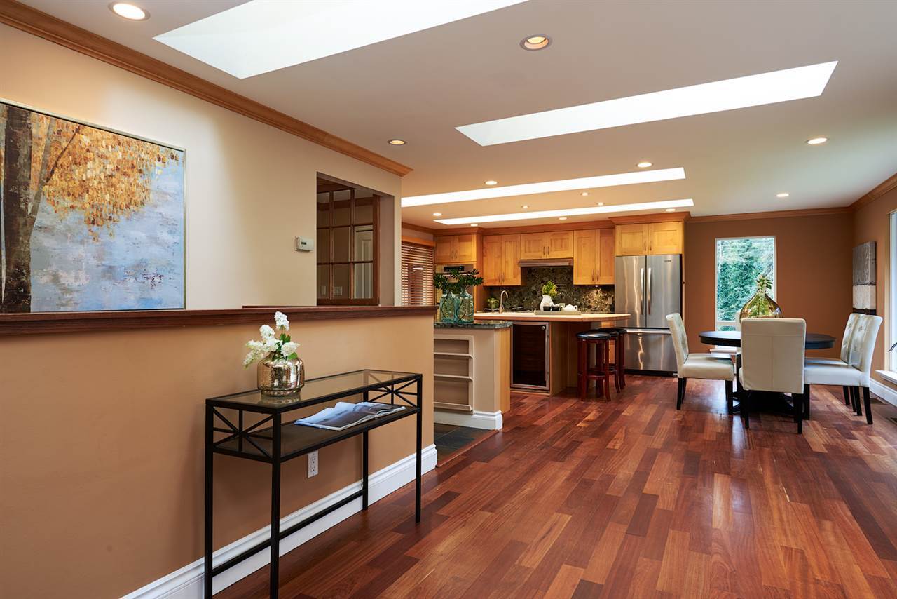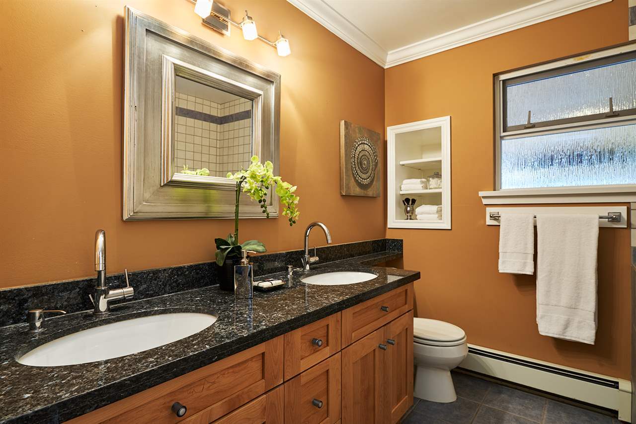 3,100 sqft 6 bed, 4 bath home is in one of the most favoured pockets of Pemberton Heights. Lovely flat, quiet street across from Sowden Park & backing onto Mackay Creek Greenbelt offering total privacy & tranquility. Exterior of house has beautiful unique features- a clay tile roof, Japanese inspired garden with water features. High quality renovation throughout and is Move In Ready. Spacious floor plan with large gourmet open kitchen - granite counters, stainless steel appliances & gas cooktop, LVRM with large patio access & 3 bdrms, 2 full baths all on 1 level. Amazing 2 Bdrm, 1 bath Mortgage helper/nanny suite downstairs with separate side door entry & own laundry. Downstairs includes family room & solarium/yoga studio. Fenced grass backyard with new retaining walls.