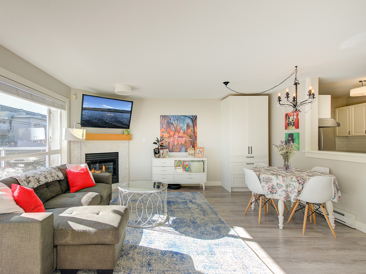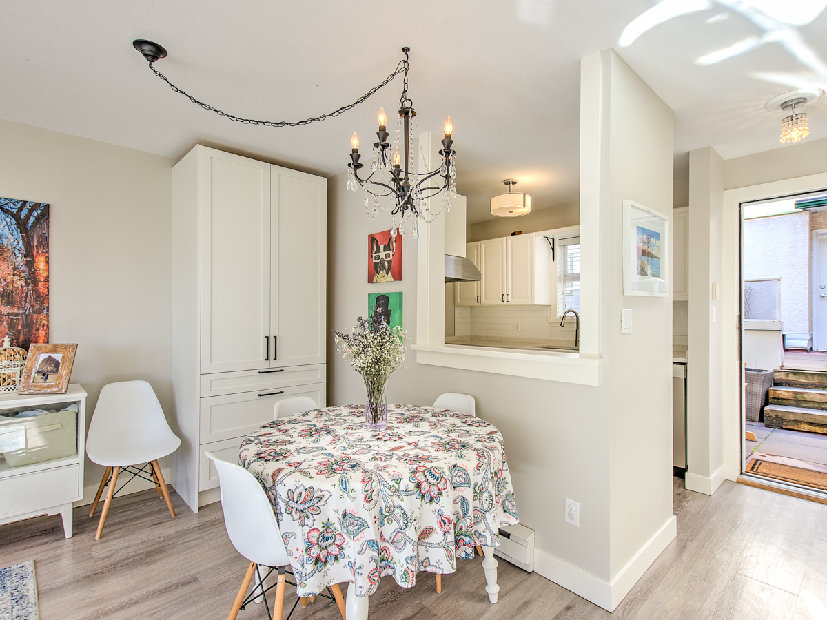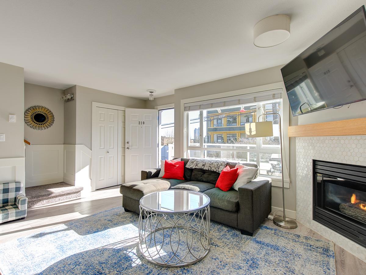 Beautiful townhome that's move in ready and checks all the boxes. Excellent North Burnaby location, very close to all amenities. A 2 level top floor unit, located on the quiet side of the building, south facing with plenty of natural light. Smart layout with living, dining, kitchen and 1/2 bath on the main including a gas fireplace, new floors, stainless steel appliances, in suite washer/dryer. Direct access to inner courtyard off kitchen. Upstairs has 2 generous sized bedrooms, bathroom. Tastefully decorated top to bottom with custom built in cabinets, wainscotting and nice details. 2 secured parking spots, a storage locker & common bike room. Pets allowed. 1st showings: 3-6pm Thursday.