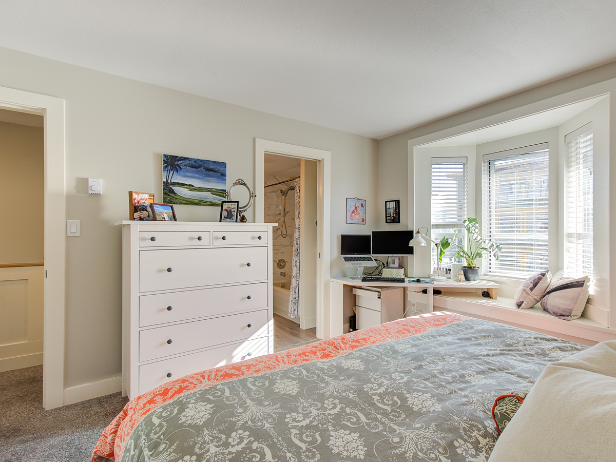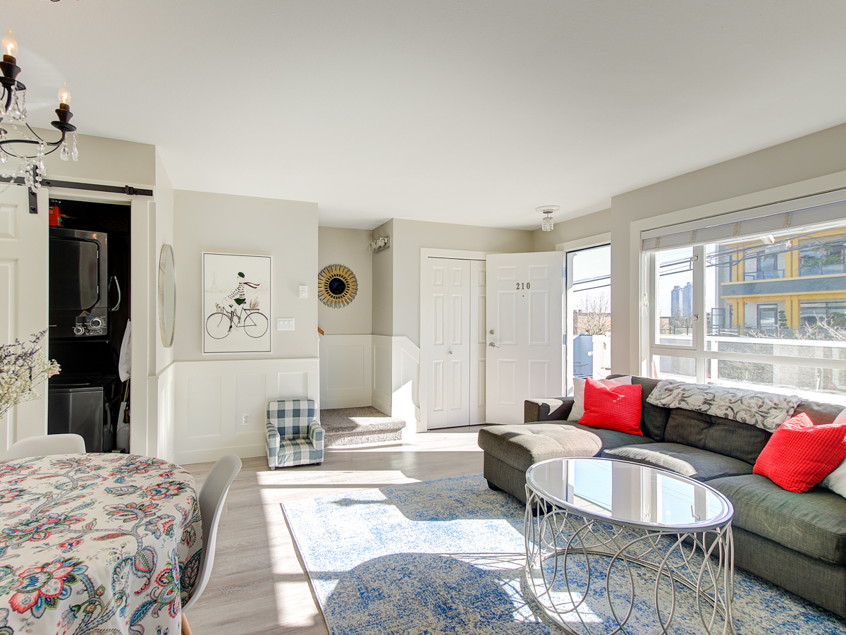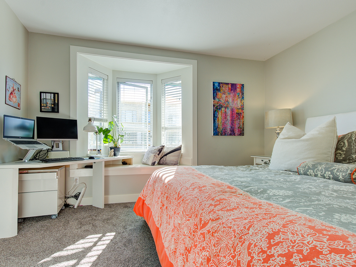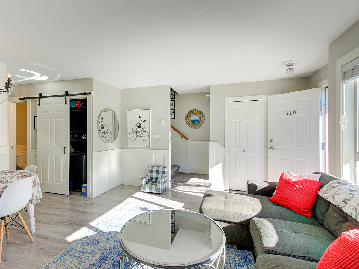 Beautiful townhome that's move in ready and checks all the boxes. Excellent North Burnaby location, very close to all amenities. A 2 level top floor unit, located on the quiet side of the building, south facing with plenty of natural light. Smart layout with living, dining, kitchen and 1/2 bath on the main including a gas fireplace, new floors, stainless steel appliances, in suite washer/dryer. Direct access to inner courtyard off kitchen. Upstairs has 2 generous sized bedrooms, bathroom. Tastefully decorated top to bottom with custom built in cabinets, wainscotting and nice details. 2 secured parking spots, a storage locker & common bike room. Pets allowed. 1st showings: 3-6pm Thursday.