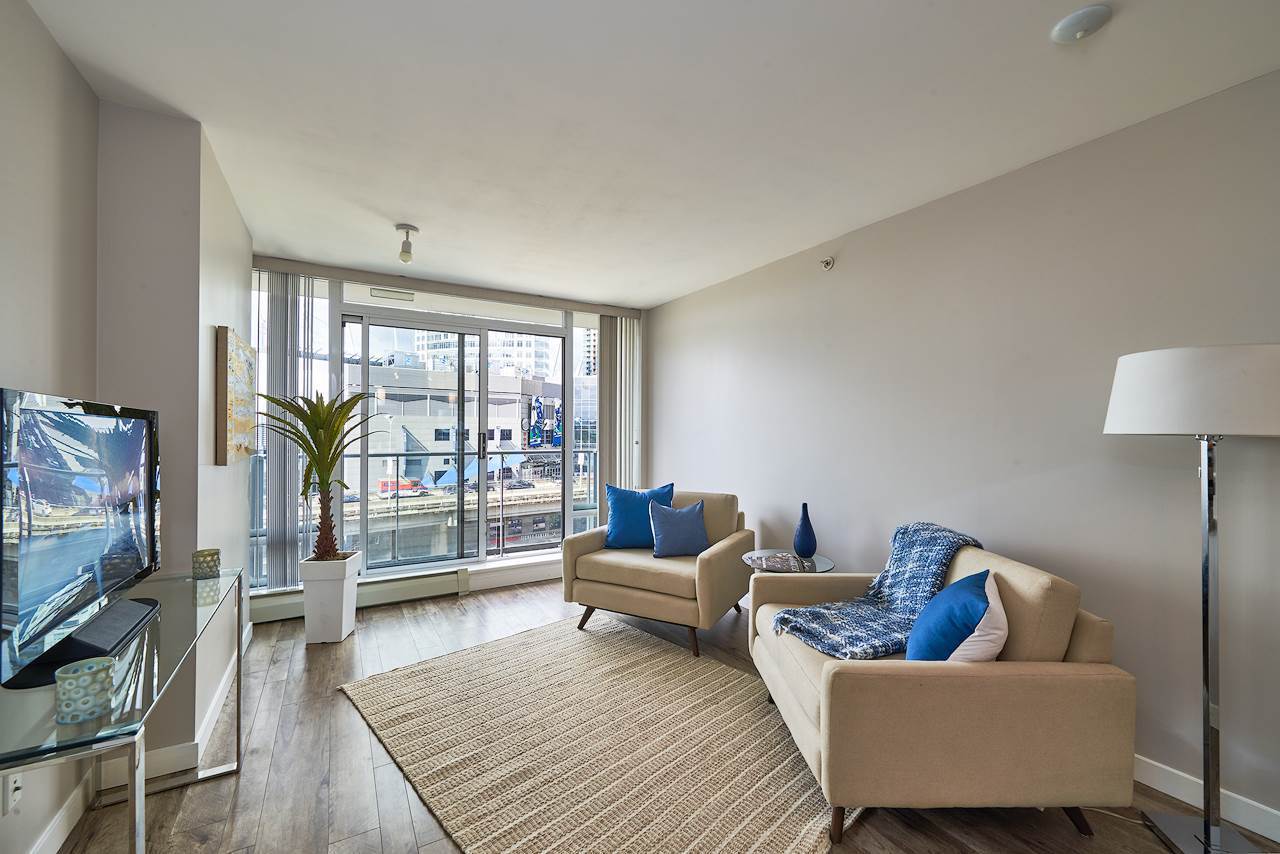 1 Bdrm in impeccable condition located in one of the most central locations of Downtown. The complex called FIRENZE is right beside the new elementary school called Crosstown. The unit features updated lighting, designer paint & custom blinds. The open floorplan, granite counters, South facing outdoor deck & in-suite storage that can be used as a den is move in ready condition The apartment also features, in-suite laundry & 1 secured parking. First class amenities include, 3 elevators, a 24m long indoor lap pool, hot tub, sauna, fitness room, lounge, big screen theater, playground and secured courtyard. Minutes to Expo Line Station GM/BC Place, Yaletown/Gastown, Vancouver Public Library, Costco, Tinseltown, and the seawall at False Creek.