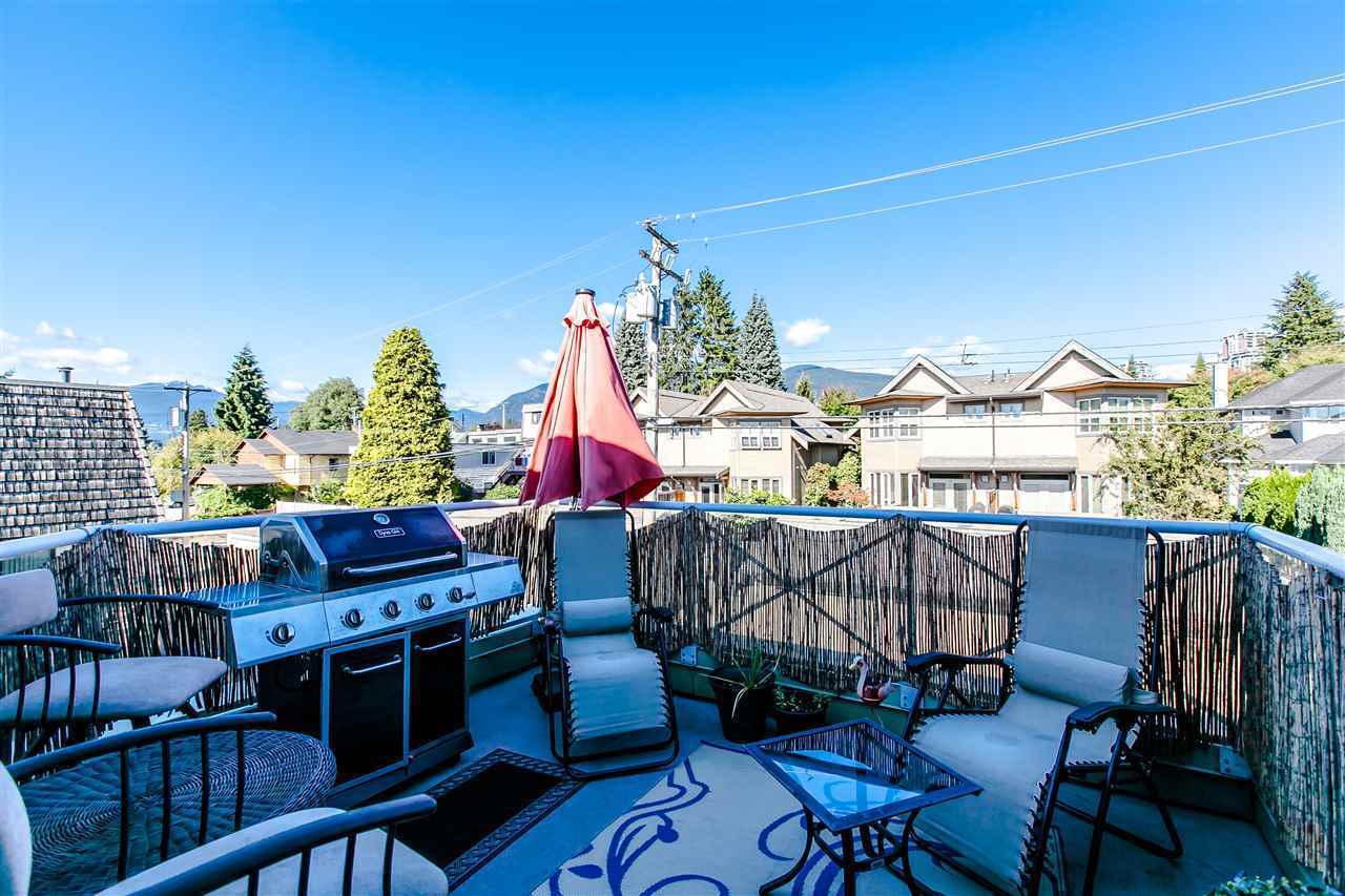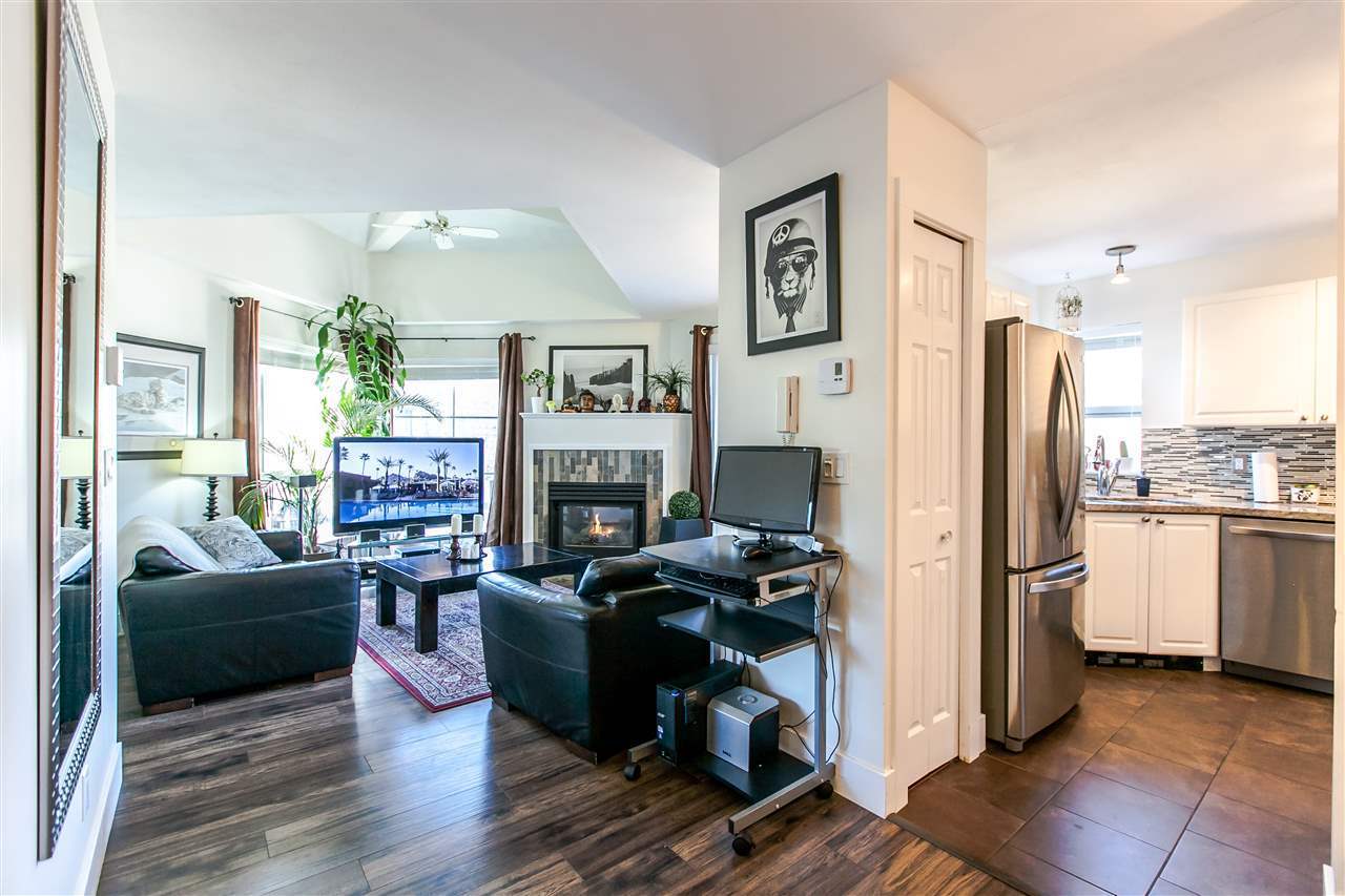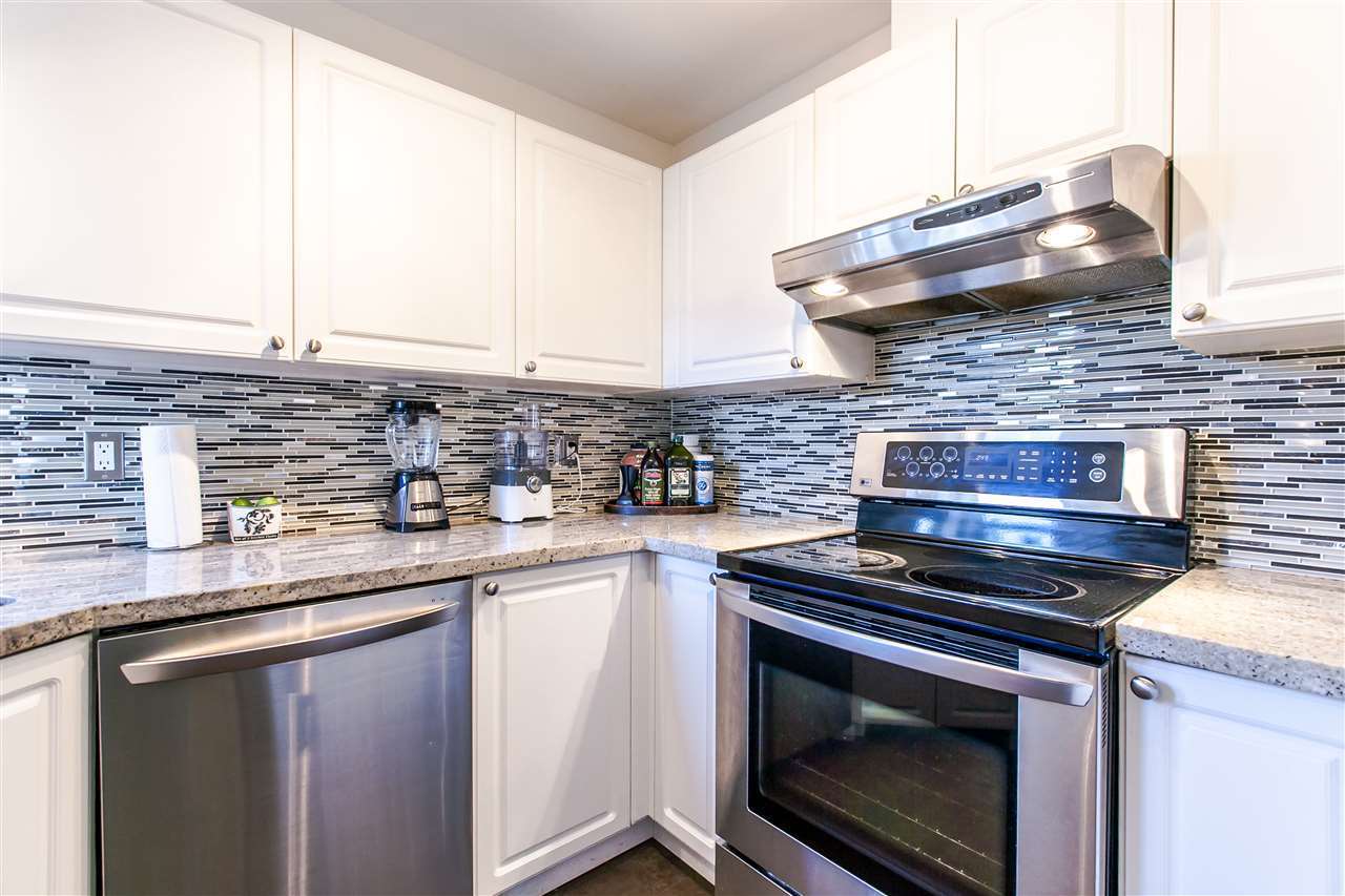 Top floor, one bedroom corner unit in impeccable condition. The large 110sqft NW facing patio gets great sun exposure. Condo features include vaulted ceilings, gas fireplace, insuite laundry, bright and private, french doors open onto patio. The updated kitchen has granite counters, stainless steel appliances, and a bright picture window above the sink. Located on a beautiful tree-lined, quiet street blocks from Lonsdale Quay. Building excellently maintained by proactive strata: plumbing upgrades in 2011-13, new roof 2007, elevator upgrade 2017. 1 storage locket and 1 parking stall. Visitor parking available. The ideal location is minutes from shopping, restaurants, and transit. Rentals allowed with restrictions and pets welcome with restrictions.