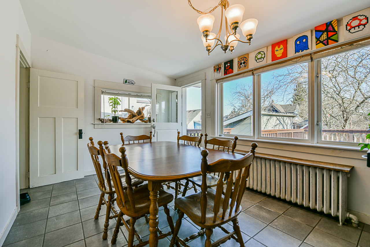 Lovingly maintained 3 level 5 bedroom home on a quiet cherry blossom tree lined street in the Main St. corridor. The 1910 home was updated by previous long term owner. Features over 2,400 SQFT of living space, open kitchen and dining area open to a 447 SQFT patio that overlooks the backyard. Upstairs is a huge master level complete with ensuite and a reading area with spectacular mountain views. The bright ground floor has 7' ceilings, separate entry, a large rec room, 2 bedrooms, full bathroom and laundry/kitchen area. The backyard is fenced with access to a back alley-famous on Halloween with trick or treaters. Walk to several parks, community centers and transit. Located in the Brock Elementary School & Tupper High School Catchment.