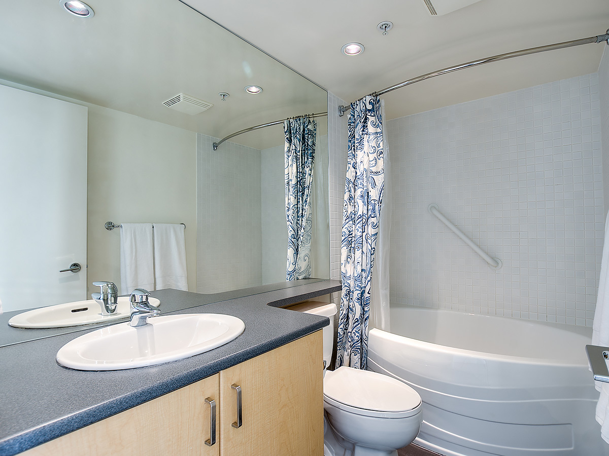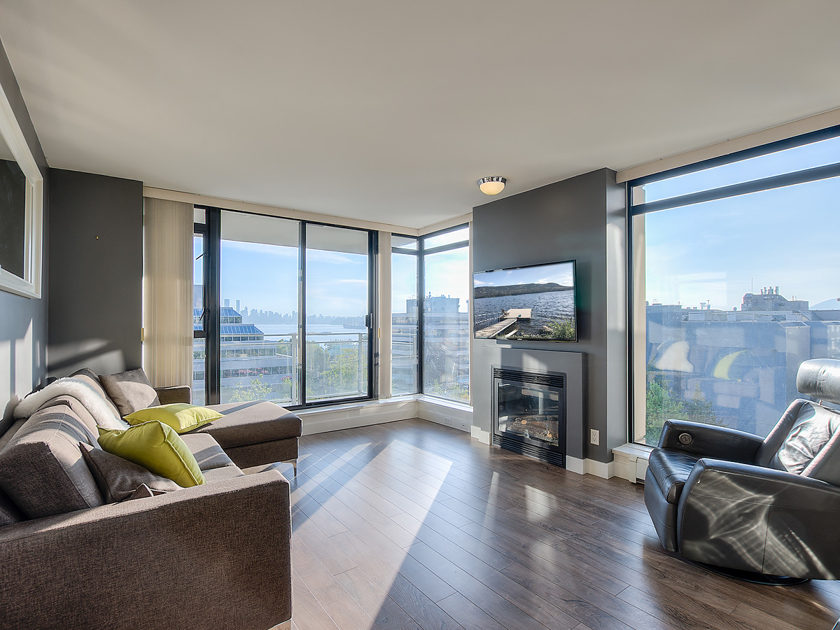 The one you've been waiting for! Welcome to the award-winning Time Building by Grosvenor built in 2004 - located in Lower Londsdale. Premier southwest corner unit with spacious covered patio and sweeping city and ocean views. 1,081 sqft - 2 bedroom, 2 bathroom plus den/office. Smart, open layout - kitchen with island, granite countertops, stainless steel appliances. Large dining & living room with gas fireplace and floor to ceiling windows. 1 Parking spot, 1 Locker. Rentals and Pets allowed. Strong strata management, well maintained building/complex. Steps to shopping, transport, seabus, restaurants and the Quay! Unit is immaculate, move in ready and checks all the boxes.